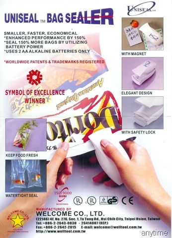 另外還發現了小型密封機,使用電熱絲來密封塑膠袋,適合暫時密封生鮮產品、液體等需要保鮮及攜帶的東西,一個賣399元,使用2顆3號電池。